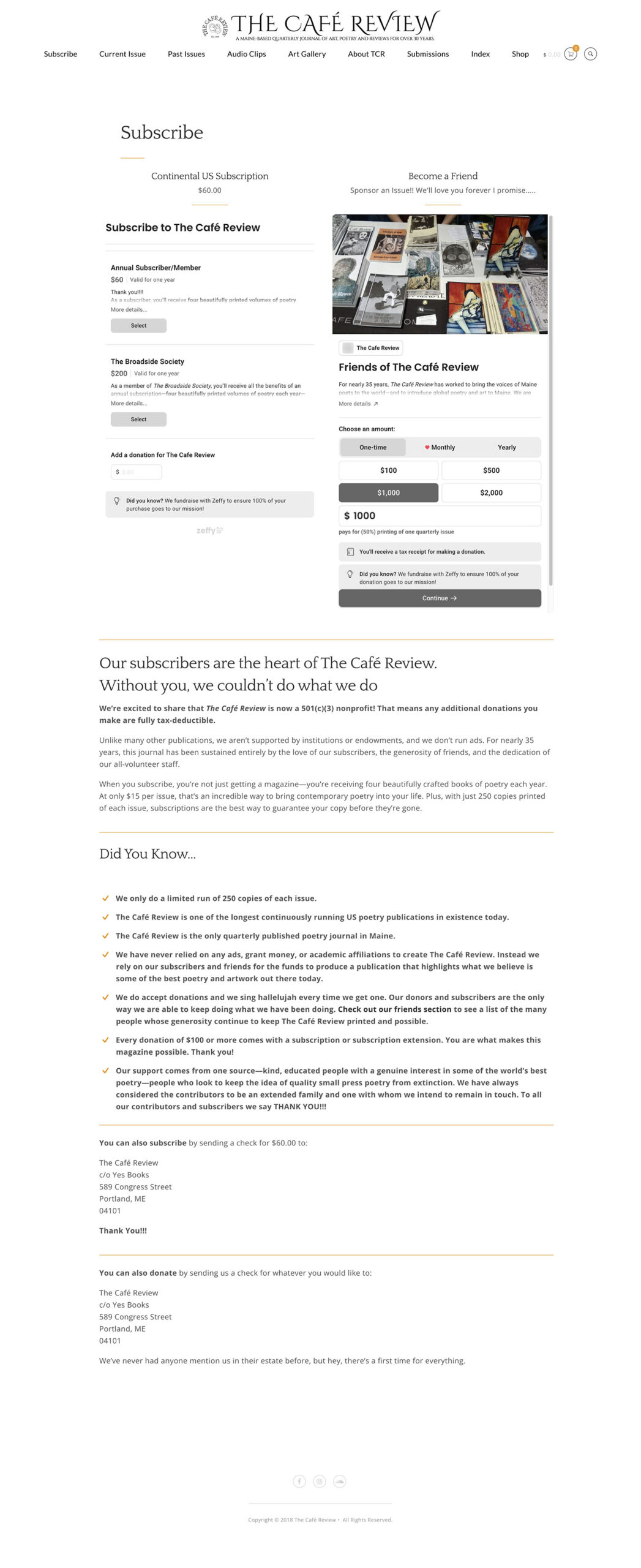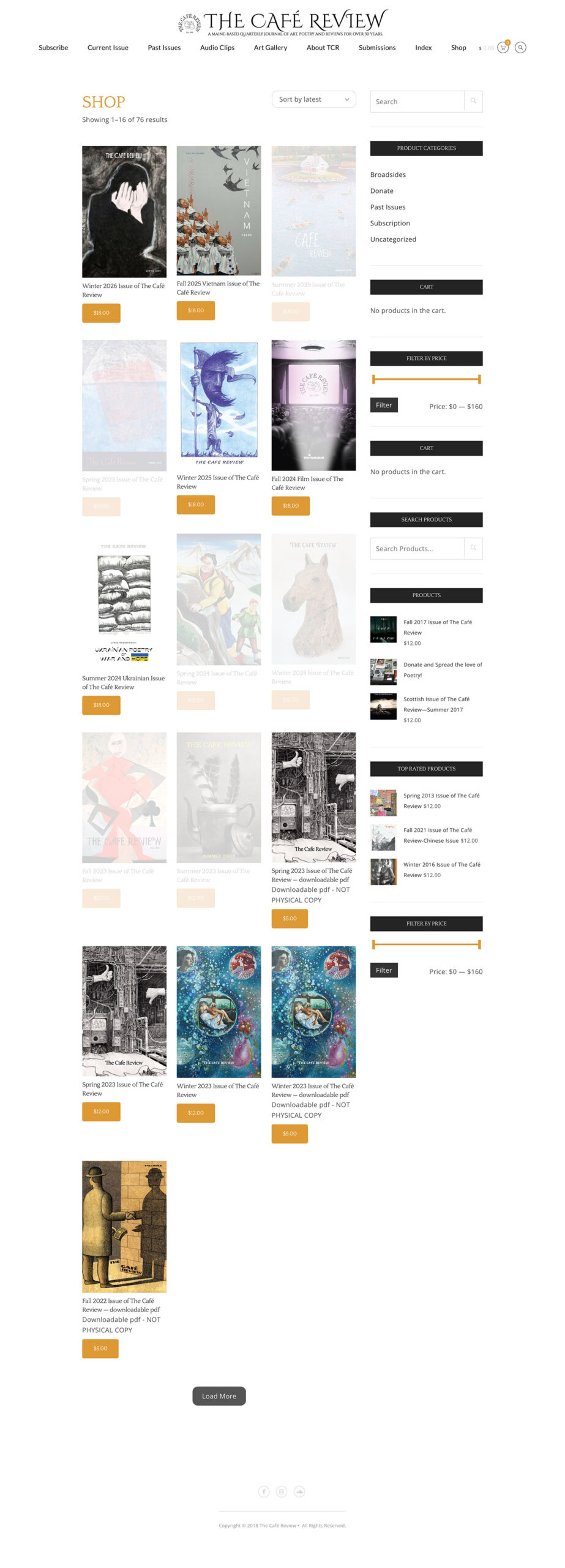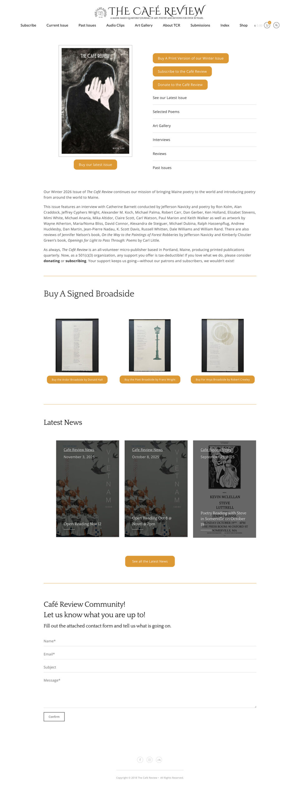The redesigned site transformed from a static informational presence into the primary digital platform for The Café Review. It now functions as a revenue-supporting product, a comprehensive public archive, and an extension of the print journal rather than a replacement for it.