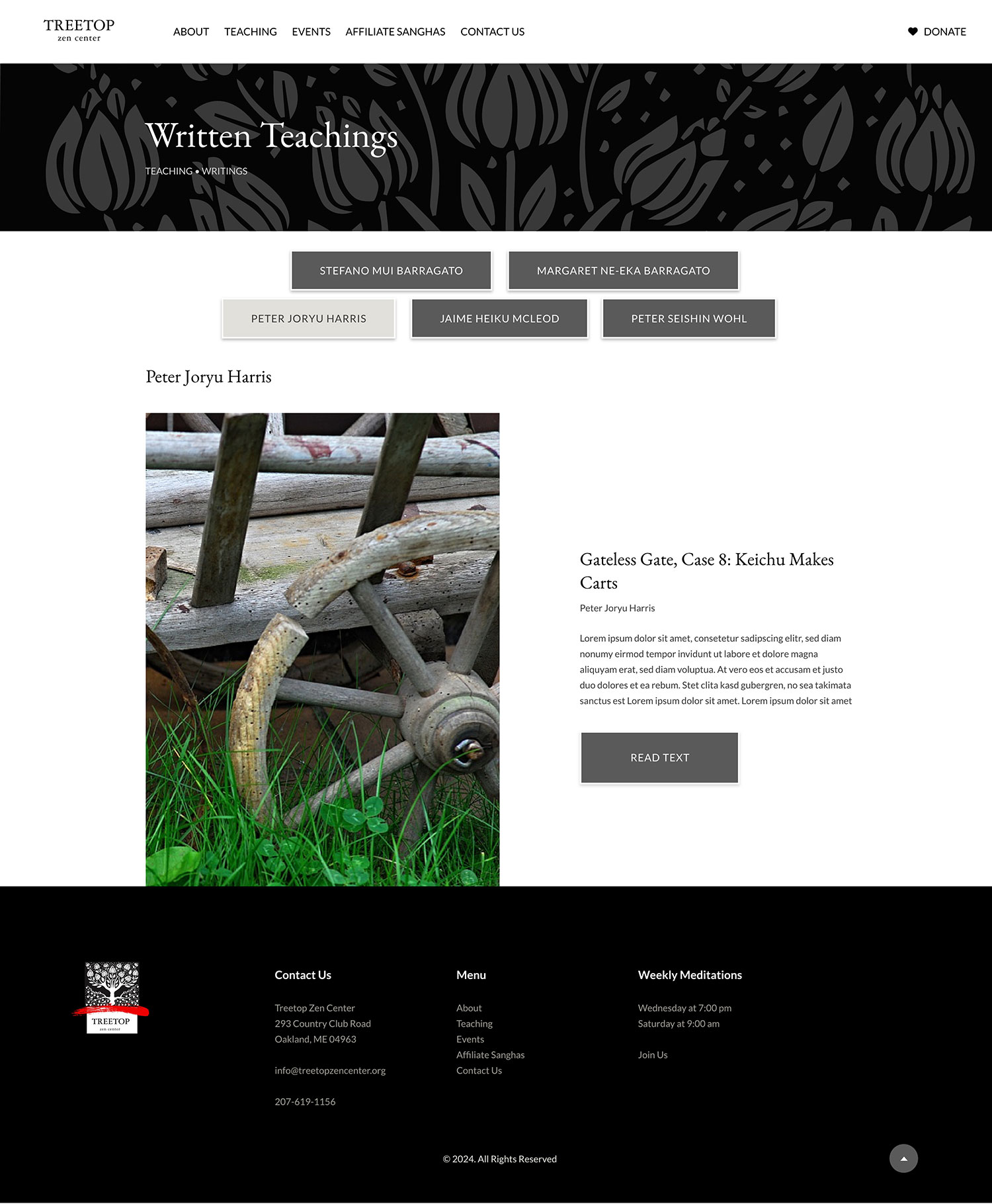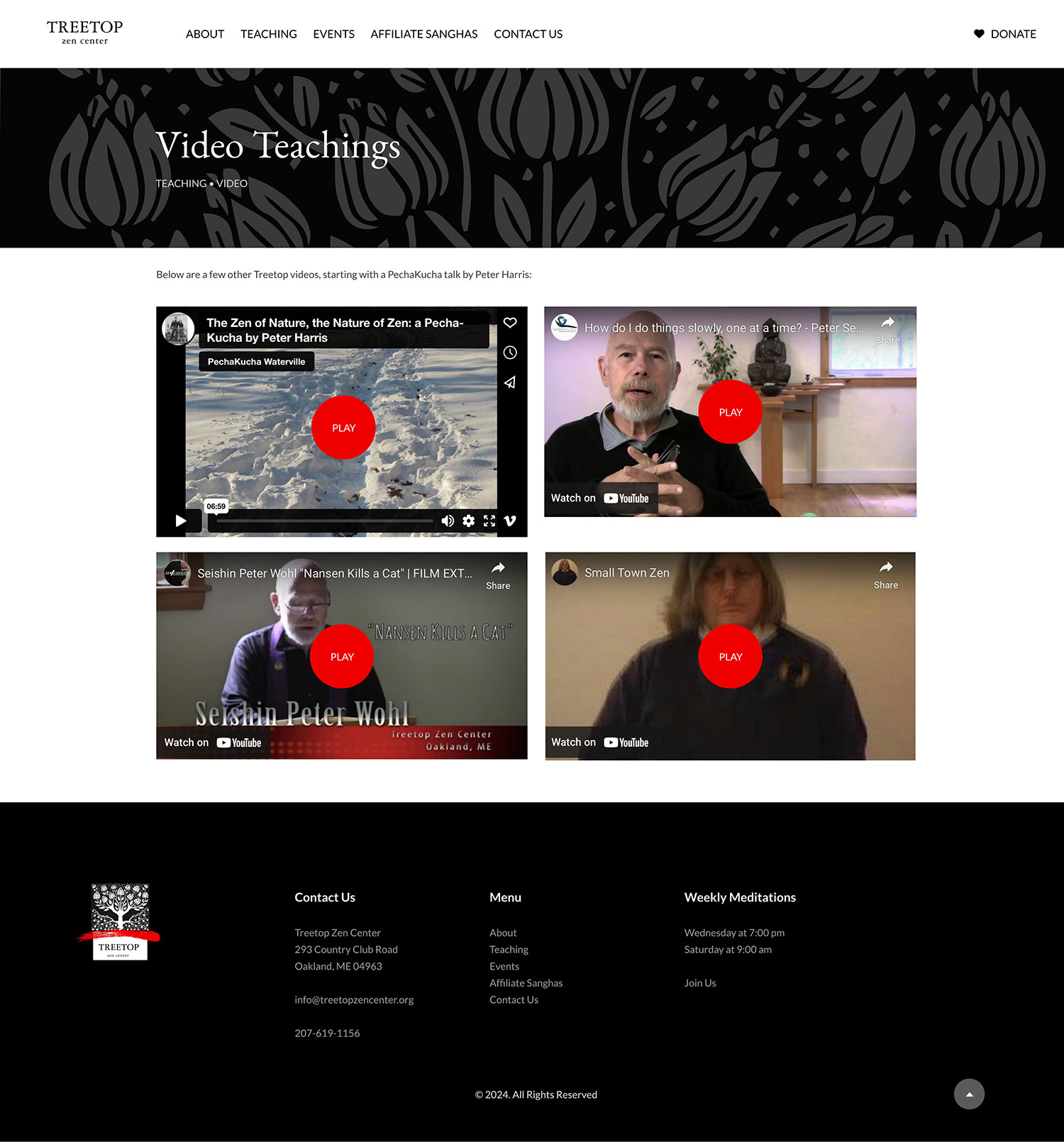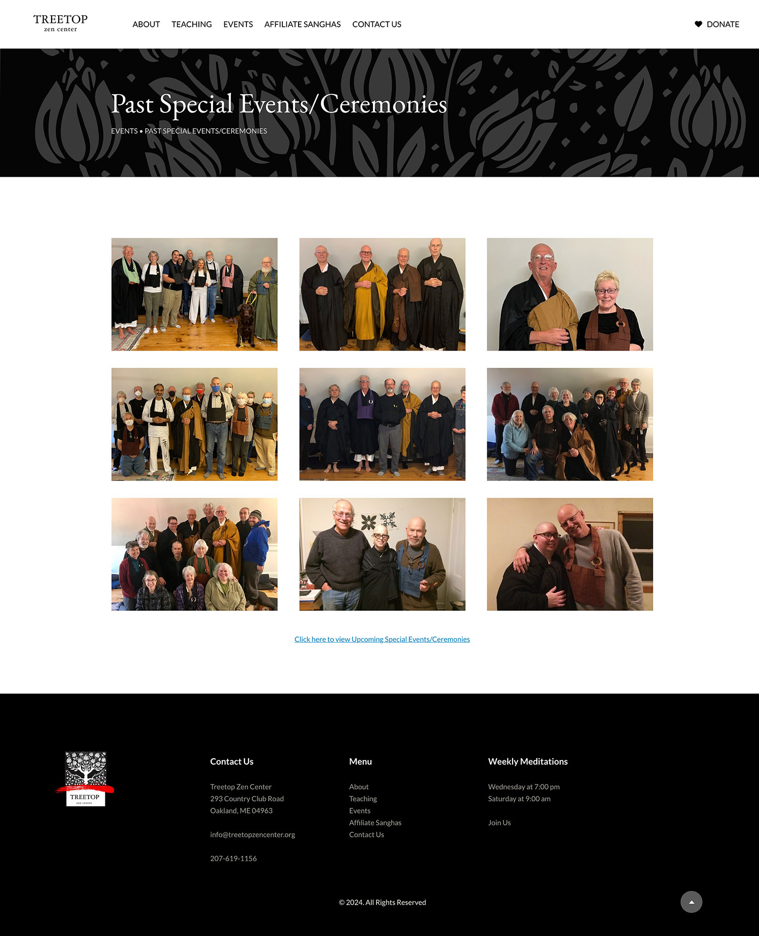 Treetop Zen Center is a small, community-based Zen practice offering weekly meditation sessions, teachings, and in-person gatherings. Their website served a wide range of audiences—from first-time visitors curious about meditation to long-time practitioners relying on the site for up-to-date schedules and events.